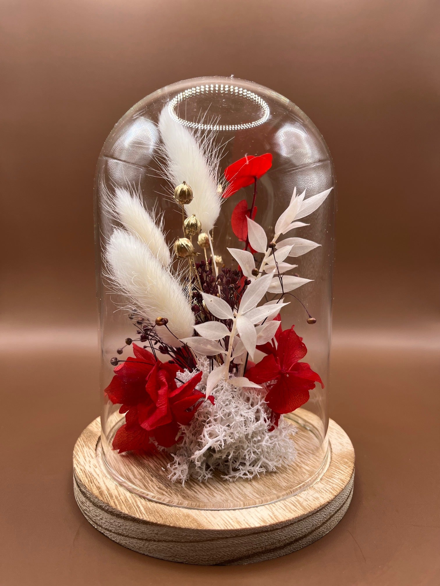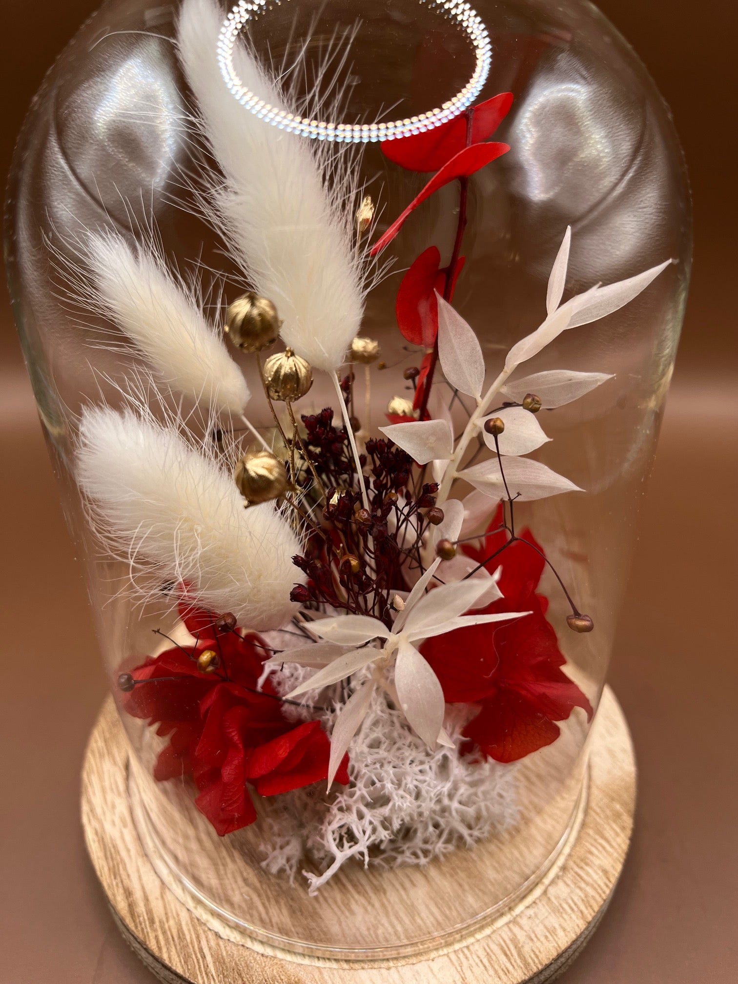 Cette cloche en verre, ornée de fleurs et feuillages séchés dans un esprit de Noël. Elle apportera une touche chaleureuse à votre intérieur, tout en célébrant la beauté de la nature.