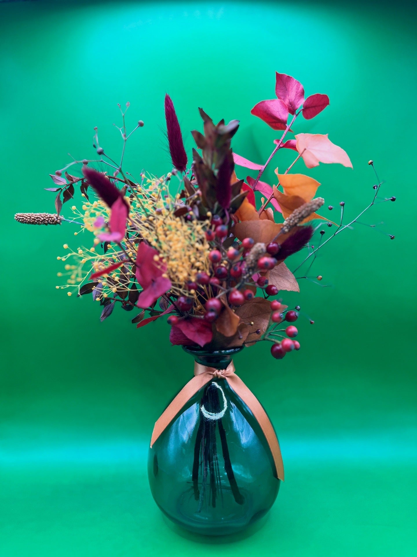 Chaque création est réalisée à la main avec amour dans mon atelier, dans une démarche éco-responsable qui valorise l’artisanat et la durabilité. Avec au minimum 50 % de fleurs françaises, ce bouquet incarne une décoration bohème, naturelle et respectueuse de l’environnement.